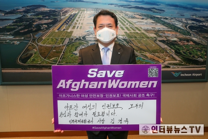 김경욱 사장(인천국제공항공사), 아프가니스탄 여성 인권 문제에 대한 국제사회 관심 환기를 위한 SNS 릴레이 캠페인인 세이브 아프간 위민(Save Afghan Women) 챌린지에 공사 김경욱 사장이 동참했다고 17일 밝혔다.