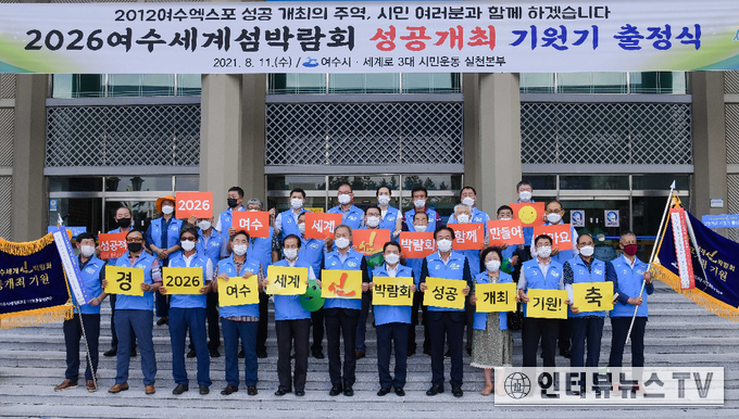 권오봉 시장, 전창곤 시의장과 섬섬여수 세계로 3대 시민운동 읍면동 실천본부장 등 35명이 참석한 가운데 출정사, 축사, 성공개최 기원기 전달 순으로 진행됐다.