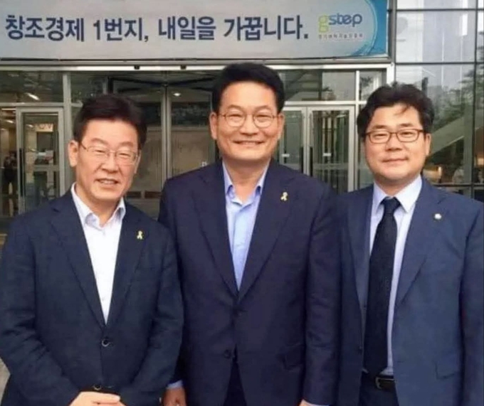 [이재명 대통령(민주당 전 대표)왼쪽부터 가운데 송영길 전 대표 오른쪽 박찬대 전 원내대표]