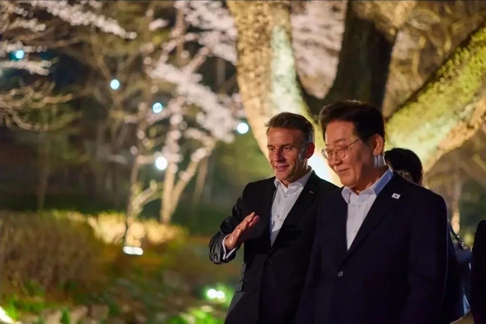 이어 이재명 대통령은 정상회담 이후 열린 공동언론발표에서 “마크롱 대통령님과 저는 중동전쟁이 야기한 경제 및 에너지 위기에 공동 대응하고자 정책 경험과 전략을 공유하고, 글로벌 경제 불확실성 해소를 위해
