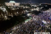 [12.3 계엄 선포 당시 전국에서 모였던 군중 국회앞 광장 가득찬 민주주의 시민들과 촛불행동 포토] 김홍이 기자=김민웅 촛불행동 상임대표 등은 법원은 경찰에게 체포된 이진숙 전 방통위원장을 석방했다. 국가공무원법 및 공직선거법 위반 혐의로 수사를 받으며 경찰의 출석 요구에 수차례 불응해 체포된 이진숙을 법원이 풀어준 것이다. 내란수괴 윤석열을 풀어준 방식과 다를 바 없다. 도대체 이 나라 사법부는 누구를 위해 존재하는가. 체포영장은 발부하고 이후 체포적부심은 인용하며 국민들을 우롱하고 있다며 사법개혁을 촉구했다. 김 대표는 사법부는 국민의 신뢰를 완전히 잃었지만, 오히려 국민과의 전면전에 나섰다. 법원은 얼마 전 공수처가 지귀연 판사의 유흥업소 접대 의혹과 관련해 청구한 압수수색 영장도 기각했으며, 참고인 신분인 지귀연에 대한 조사와 자료 입수를 강제하기 위한 조치도 막은 것이다. 심지어 지귀연이 윤석열의 구속 취소 판결 시기, 접대 의혹이 제기된 시기에 휴대전화를 여러 차례 교체했다는 것이 확인된 상황이었다고 말했다. 김 대표는 만약 일반 국민이었다면 증거인멸로 압수수색을 받고 구속되었을 상황이지만, 지귀연 판사는 예외였다. 이래 놓고 지귀연의 유흥업소