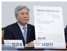 [조국 위원장과 서왕진 의원과 함께 조희대 대법원장 탄핵소추안 발표 포토] 김홍이 기자= 조국 위원장 이끈 조국혁신당은 10월 17일 “사법부를 향한 국민적 분노의 본질은 ‘조희대 사법부’에 대한 총체적 불신”이라며 조희대 대법원장에 대한 탄핵소추안을 공개하고, 법원행정처 폐지 및 재판소원제 도입을 담은 사법개혁안을 긴급 발표했다. 조국 비상대책위원장은 17일 서울 여의도 국회에서 비대위 회의를 열고 “피소추자 조희대는 대선 개입 판결로 국민주권주의와 대의민주주의, 실질적 법치국가 원칙 등 헌법 질서를 심대하게 훼손했고, 남용했다”라며 “피소추자의 중대한 헌법위반은 국민이 부여한 신임에 대한 배신으로 탄핵에 의한 파면은 정당하다”라고 주장했다. 조국 위원장은 “대법원이 자초한 위기는 조 대법원장의 대선 개입에서 비롯됐다”며 “이 문제를 최고법원이라는 이유로 어물쩍 넘어간다면 사법부의 신뢰 회복은 불가능하고 사회적 갈등은 증폭될 것”이라고 강조했다. 그러면서 “국회가 본질적인 해결책인 조 대법원장에 대한 탄핵을 미루고 있다”라며 “조국혁신당이 나서겠다. 오늘 최후 수단인 탄핵소추안을 공개하고 개혁 야당들과 함께 사법 개혁 연대를 추진하겠다”라고 적극 강조했다.