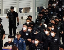 [인천국제공항 입국장에 캄보디아 한국인 범죄 용의자들이 경찰 호송조와 함께 각 경찰서로 호송되고있다] 김홍이 기자=캄보디아에서 보이스피싱(전화금융사기) 등 범죄에 가담했다가 현지 경찰 조사를 받고 이민 당국에 구금된 한국인 범죄 용의자 64명이 18일 오전에 인천공항에 범죄 혐의로 경찰의 호송조와 함께 도착했다. 또한 캄보디아에서 구금된 한국인 64명은 이날 오전 1시 15분께 수도 프놈펜 인근 테초 국제공항에서 대한항공 전세기를 타고 한국으로 출발 후 인천국제공항에는 이날 오전 8시경 도착했다. 따라서 경찰 호송조 190여명이 함께 탄 이 전세기는 이날 송환되는 64명은 최근까지 캄보디아 이민 당국에 구금된 한국인 전원이며 전날 캄보디아 국가경찰청이 밝힌 59명보다는 5명 더 늘었다고 밝혔습니다. 이들 가운데 59명은 캄보디아 당국의 사기 단지 검거 작전 때 붙잡혔고, 나머지 5명은 스스로 신고해 범죄 단지에서 구출됐다. 이어 현지에서 구금된 또 다른 한국인 4명은 앞서 지난 14일과 전날 오전 2명씩 대한항공 국적기를 타고 먼저 국내로 송환되 경찰서에서 조사를 받고있다. Reported by 김홍이/대기자 손병걸/정치사회부기자