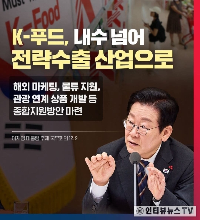 김홍이 권오춘 기자=이재명 대통령은 9일 국무회의에서 올해 들어서 지난달까지 K-푸드 수출이