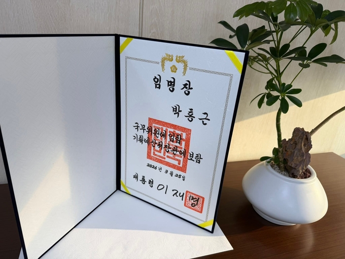김홍이기자=이재명 대통령은 24일 청와대에서 박홍근 기획예산처 장관에 임명장을 수여 했습니다.