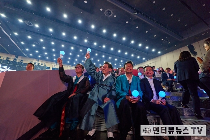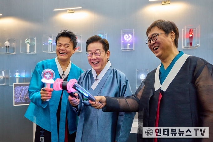[이재명 대통령과 박진영 대중문화교류위원장 왼쪽 그리고 최휘영 문화체육관광부 장관 오른쪽 포토]