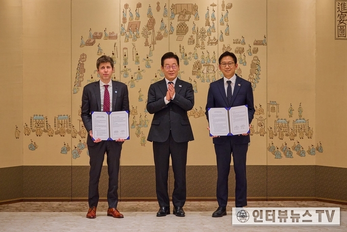 [이재명 대통령과 왼쪽 인공지능 챗GPT 알트만 대표와 배경훈 과학기술통신부장관 포토]