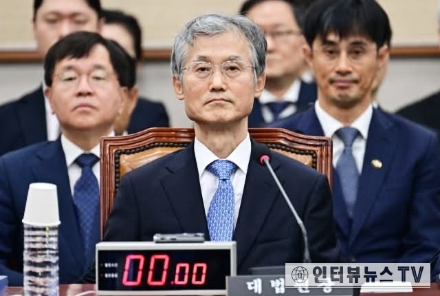 [조희대 대법원장에게 국회 법사위 의원들이 질의를 하고있다 포토]