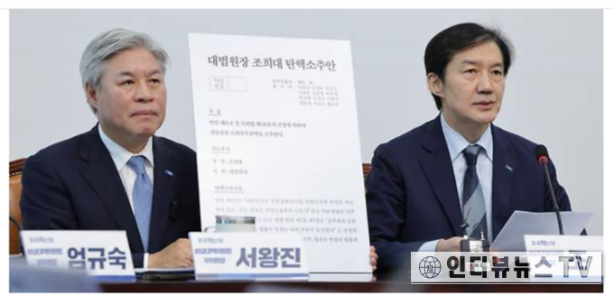 [조국 위원장과 서왕진 의원과 함께 조희대 대법원장 탄핵소추안 발표 포토]