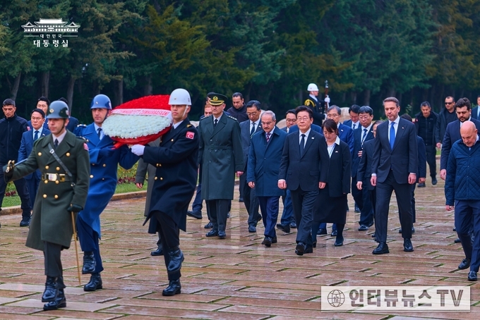 이재명 대통령과 김혜경 여사는 11월 25일 튀르키예 국부 무스타파 케말 아타튀르크의 영묘 '아느트카비르'를 찾아 헌화하며 순방 일정을 시작했습니다.