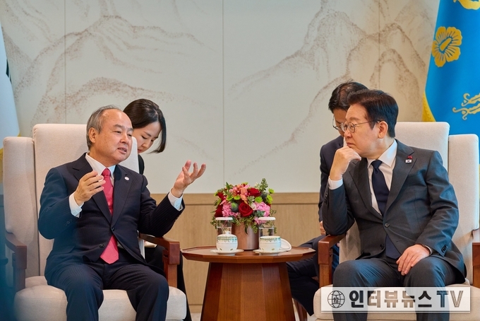 [이재명 대통령 오른쪽과 손정의 소프트뱅크 회장 왼쪽 포토]
