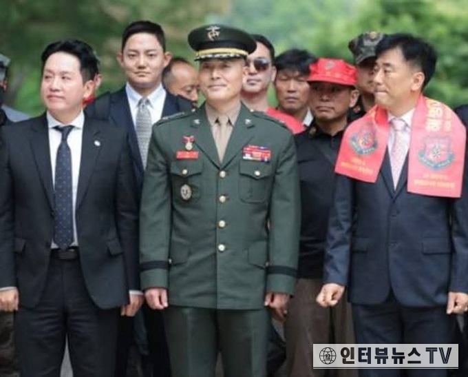 [앞줄 가운데 박정훈 대령과 임태훈 군인권센타소장 등 포토]