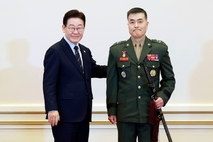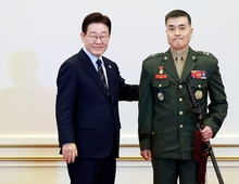 [이재명 대통령은 6일 박정훈 준장 (장군)에게 삼정검(三精劍)수여 포토 김홍이기자=이재명 대통령은 6일 청와대에서 박정훈 준장(장군)외 육군, 해군, 공군, 해병대 준장 진급자 77명에게 삼정검(三精劍)수여했습니다. 해병대 박정훈 준장(국방부조사본부장)은 국민과 국가를 불의한 정권의 외압과 겁박에도 흔들리지 않았습니다. 군인의 본분과 원칙을 지켜온 모습은 많은 국민께 깊은 울림을 주었다고 봅니다. Reported by 김홍이/대기자 권오춘/기자